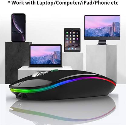 Dezful Rechargeable Croma Bluetooth mouse Wireless Ergonomic Optical Mouse with Bluetooth (Bluetooth, 2.4GHz Wireless, Type C, Black)