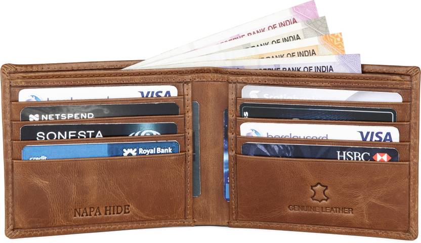 Men Tan Genuine Leather RFID Wallet - Regular Size (8 Card Slots)