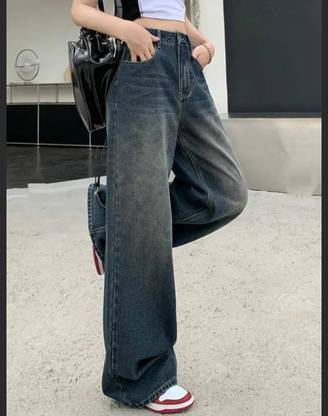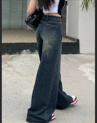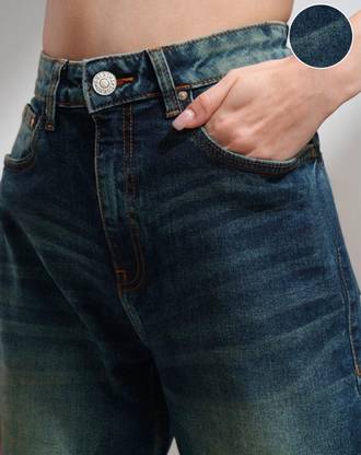 Women Loose Fit High Rise Dark Blue, Dark Green Jeans